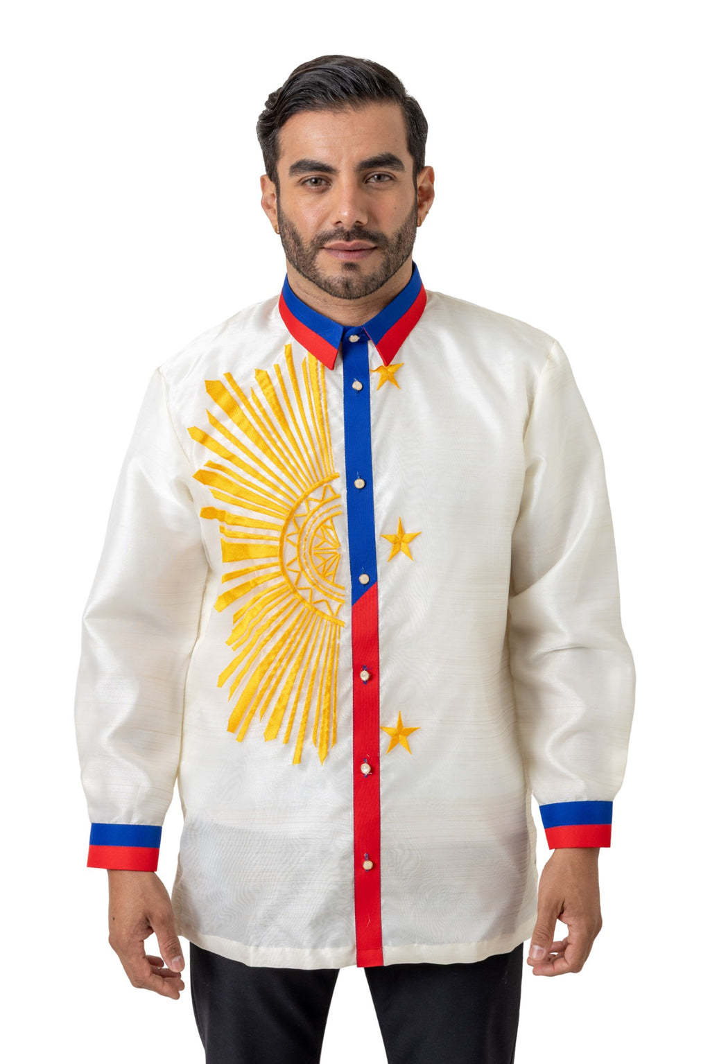 Show your Filipino pride in a unique way with his ethnic sun, stars, and Philippine flag colors.